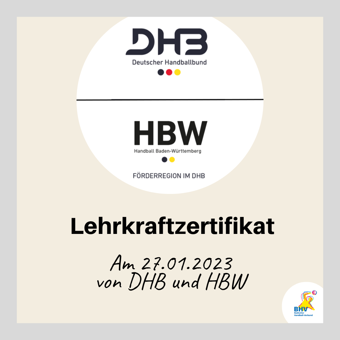 Der BHV bietet in Kooperation mit Handball Baden-Württemberg das DHB-Lehrkraftzertifikat an. Die Lehrkraftfortbildung findet am 27.01.2023 in Eggenstein statt.