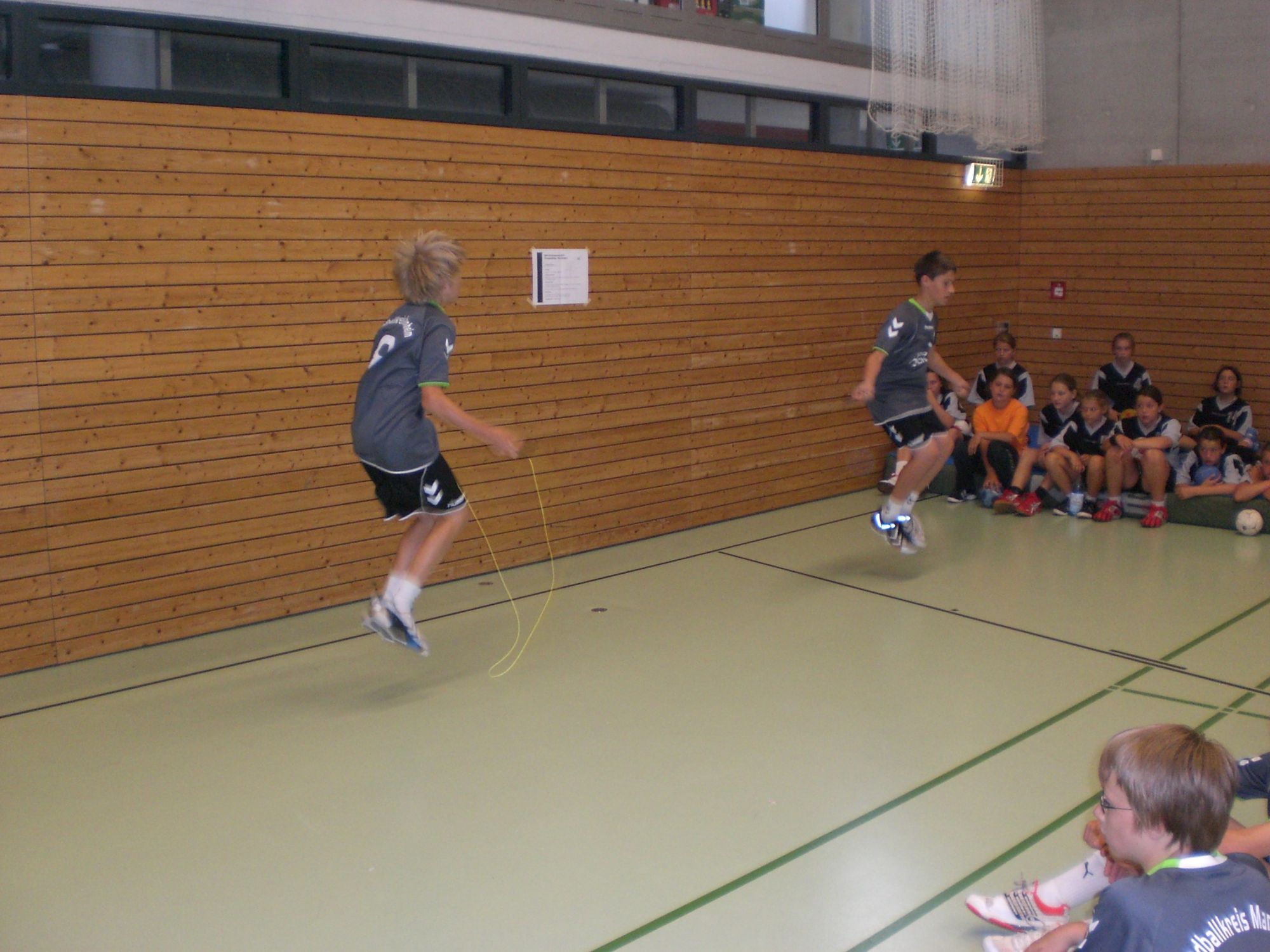 Der sportliche Teil am Samstag wird abgerundet mit zwei mal 15 Min. Handball in der Spielform 6 gegen 6. Der Fokus liegt hier auf einer offensiven Abwehrspielweise im 3:3 Abwehrsystem. Nach 5 Einzelgegenstoße heißt es "Ab unter die Dusche".