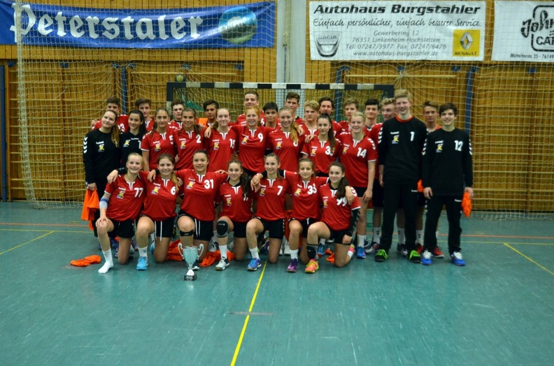 Die Mädchen starteten gegen die Auswahl aus Südbaden in das Turnier. Das Spiel endete mit einem knappen Sieg 18:17. Das zweite Spiel gegen Bas-Rhin endete mit dem nächsten Punktgewinn mit 19:8. Im dritten Spiel gegen Saar gewannen unsere Mädchen 23:19, das bedeutete ein Endspiel gegen die genauso ungeschlagenen Mädchen aus Hessen. In diesem Spiel überraschten unsere Mädchen die gut gefüllte Halle 2. Besonders in der Abwehr setzten sie die Hessinnen unter Druck, welche in der ersten Halbzeit nur zwei Tore erzielten. Somit gingen sie in die Pause mit 10:2 Vorsprung. In der zweiten Halbzeit wurde das Spiel souverän kontrolliert und die Mädchen beendeten das Spiel mit einem klaren Sieg 21:12.