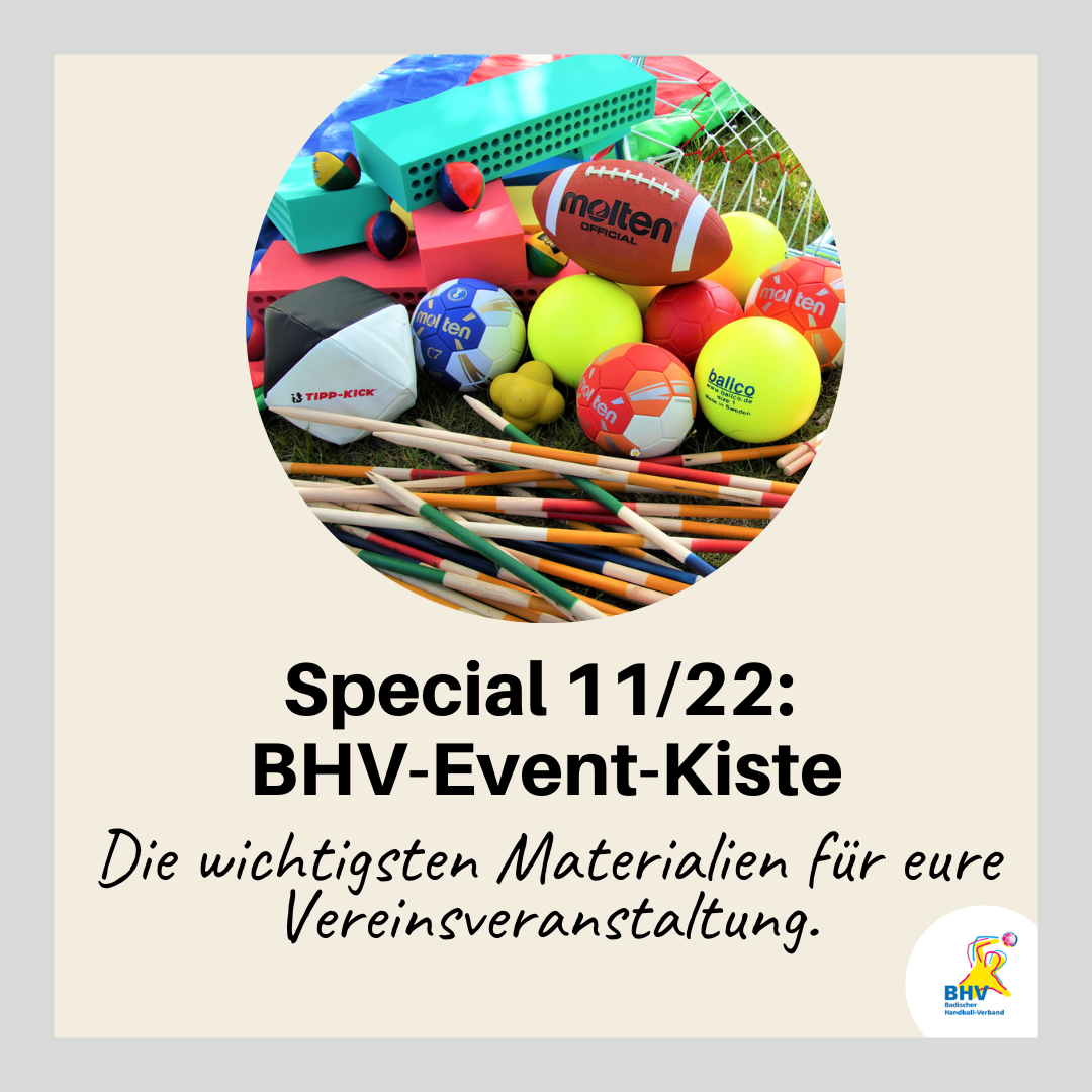 Im Vereinsleben entstehen kreative Ideen, die sich aber manchmal aus finanziellen Gründen nicht umsetzen lassen. Hier setzen wir mit der BHV-Event-Kiste an. Diese ist prall gefüllt mit verschiedenen Materialien, mit denen man über den täglichen Handball-Tellerrand hinaus schauen kann.