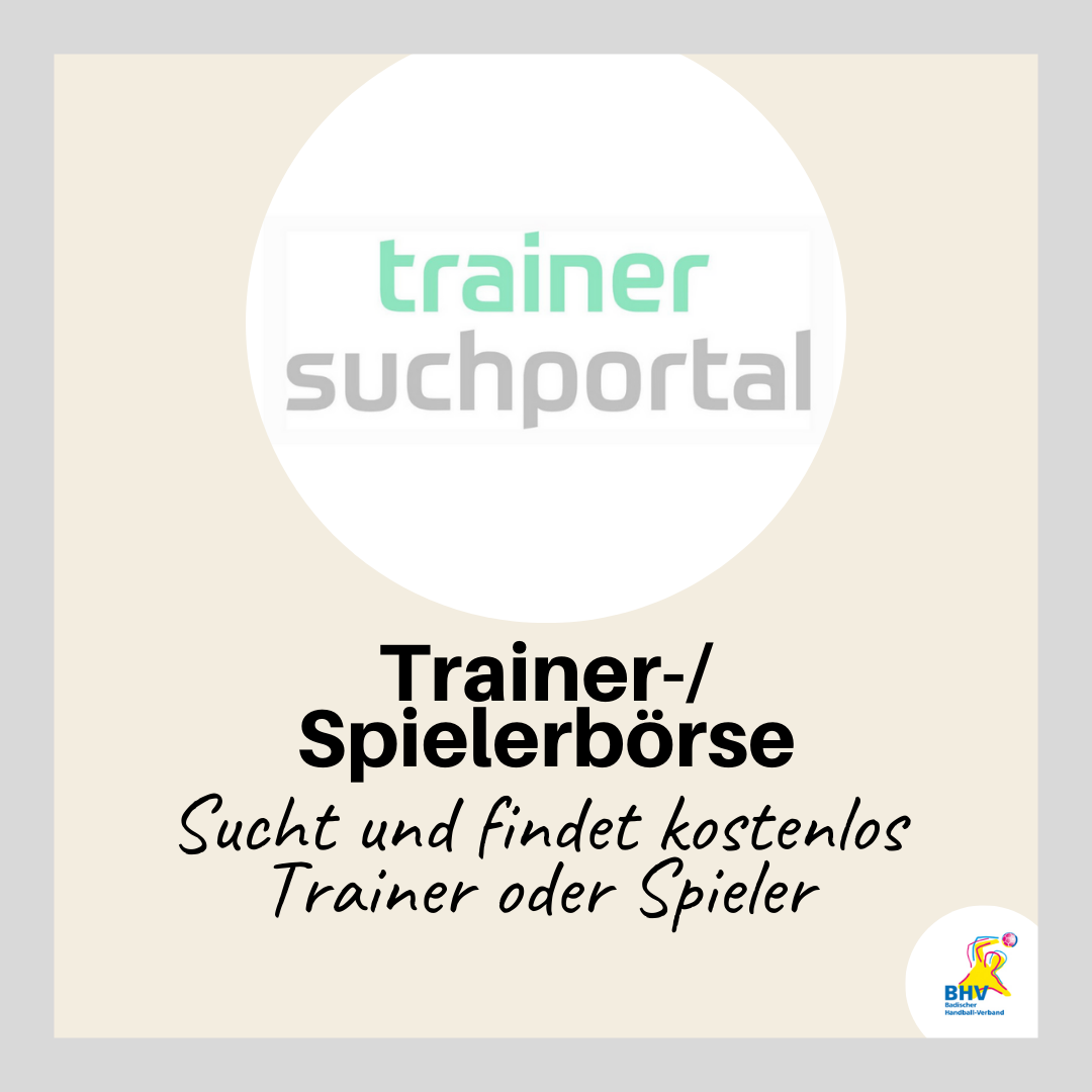 In den Rubriken Trainer*in, Spieler*in und Turniere findest du Kleinanzeigen diverser Vereine bzw. Personen. Trainer-Angebote oder Gesuche kannst du selbst dank der Kooperation mit Trainersuchportal.de einpflegen. Wenn du dein Turnier oder SpielerInnen-Gesuch hier veröffentlichen möchtest, senden bitte eine Mail mit dem Text bzw. eine PDF-Datei an die Geschäftsstelle: geschaeftsstelle(@)badischer-hv.de.