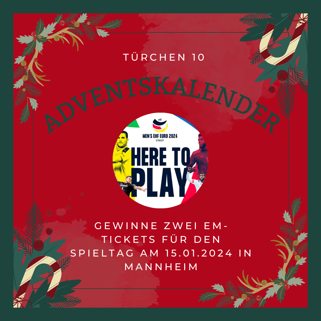 Heute ist schon der zweite Advent! Nur noch zwei Wochen bis Heiligabend! Ihr braucht noch ein super Weihnachtsgeschenk oder möchtet euch selbst eine riesige Freude machen? Dann habt ihr jetzt die Möglichkeit zwei EM-Tickets für den Spieltag am 15.01.2024 in Mannheim zu gewinnen!
