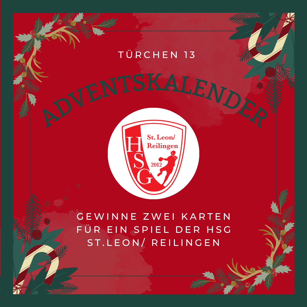 Hinter Türchen 13 findet ihr 2 Karten für ein 3.Liga Spiel eurer Wahl der HSG St.Leon/ Reilingen (Damen).