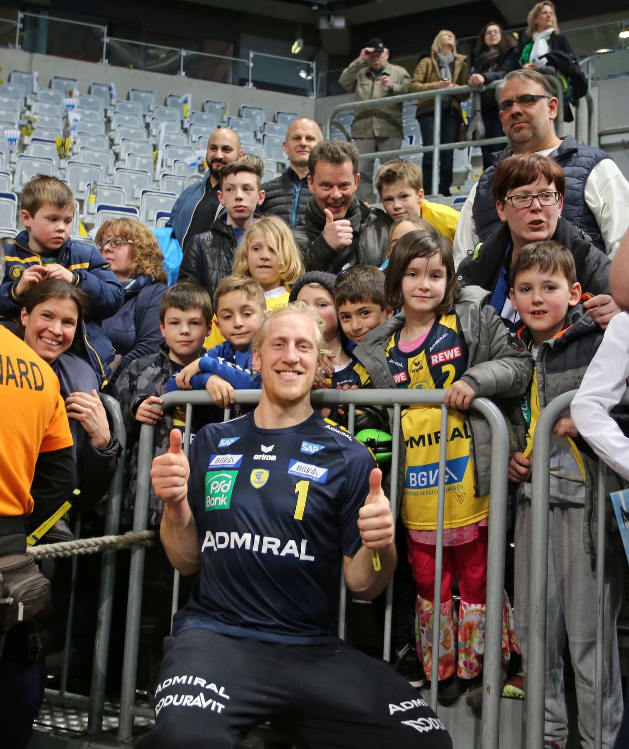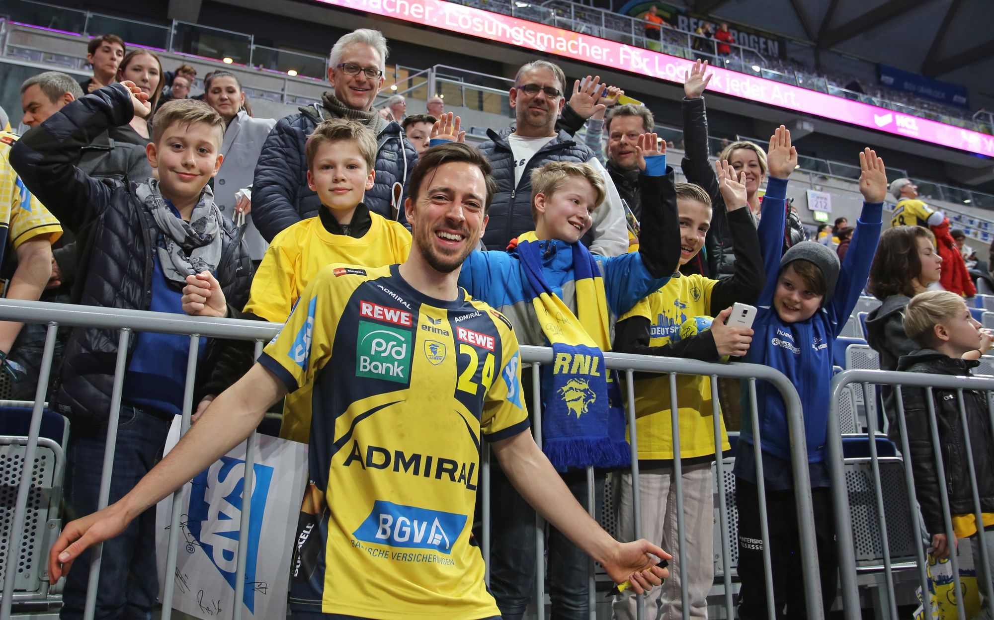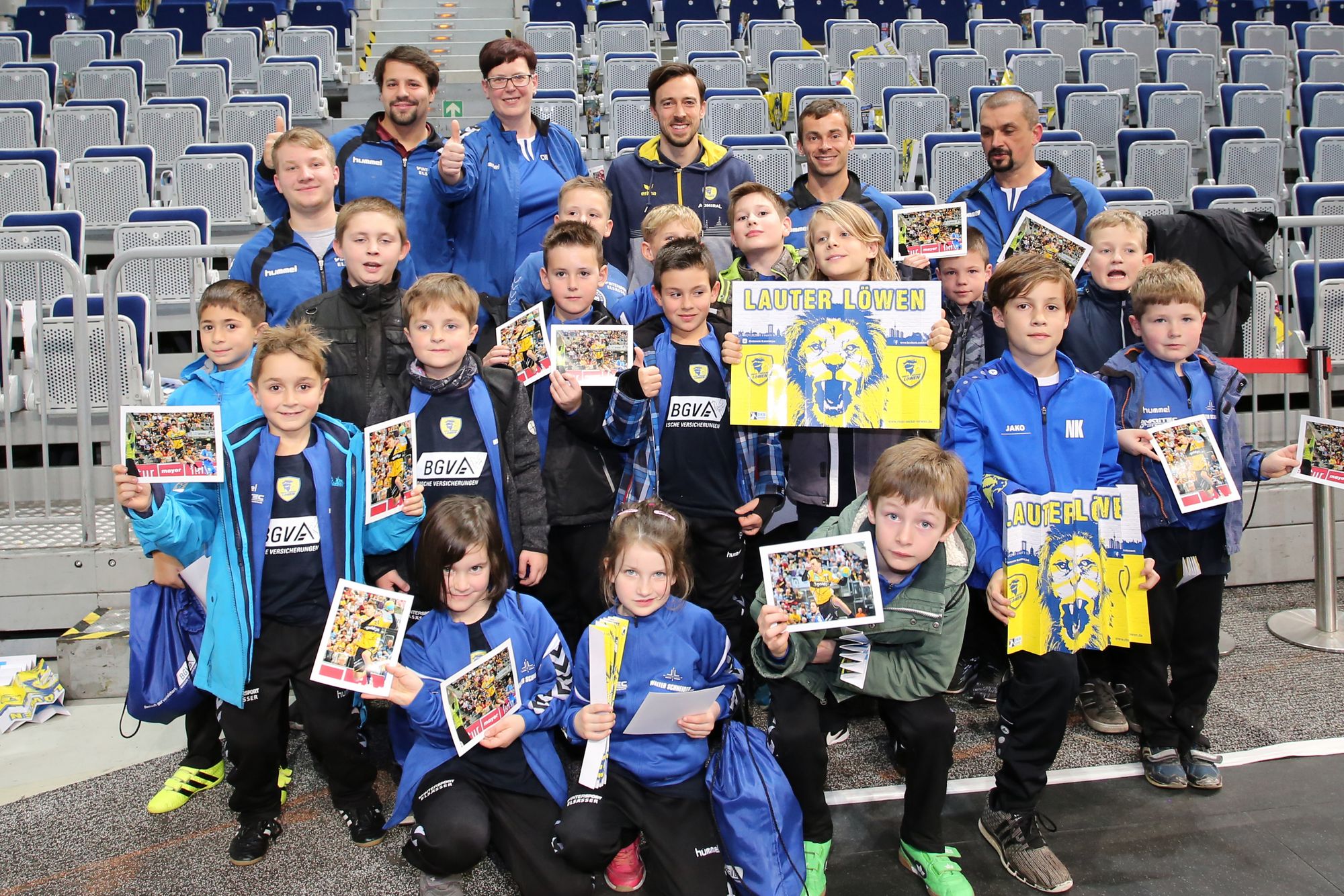 Die Ispringer hatten offensichtlich einen bleibenden Eindruck hinterlassen. Wieder hatten sich die Kids mit Fotos ihrer Stars bewaffnet und wollten sie unterschreiben lassen. Da es aber zu viele Autogrammwünsche waren, sicherte der Pressesprecher der Löwen, Christopfer Monz, zu, dass die Autogrammkarten in Ruhe unterschrieben und den Vereinsvertretern zugesandt würden. Dennoch konnten viele Kinder von ihren Idolen eine Unterschrift auf T-Shirts, Trainingsanzug oder Handbällen ergattern. Am Ende gab es noch Gruppenfotos mit den Löwenspielern Andy Schmid, Mikael Appelgren und Hendrik Pekeler. Da der Spieltag auf den „Schmutzigen Donnerstag“ fiel, hatten sich einige Kinder und Erwachsene auch faschingsgemäß verkleidet. Auf der Rückfahrt wurde der Bus zum "Partymobil".