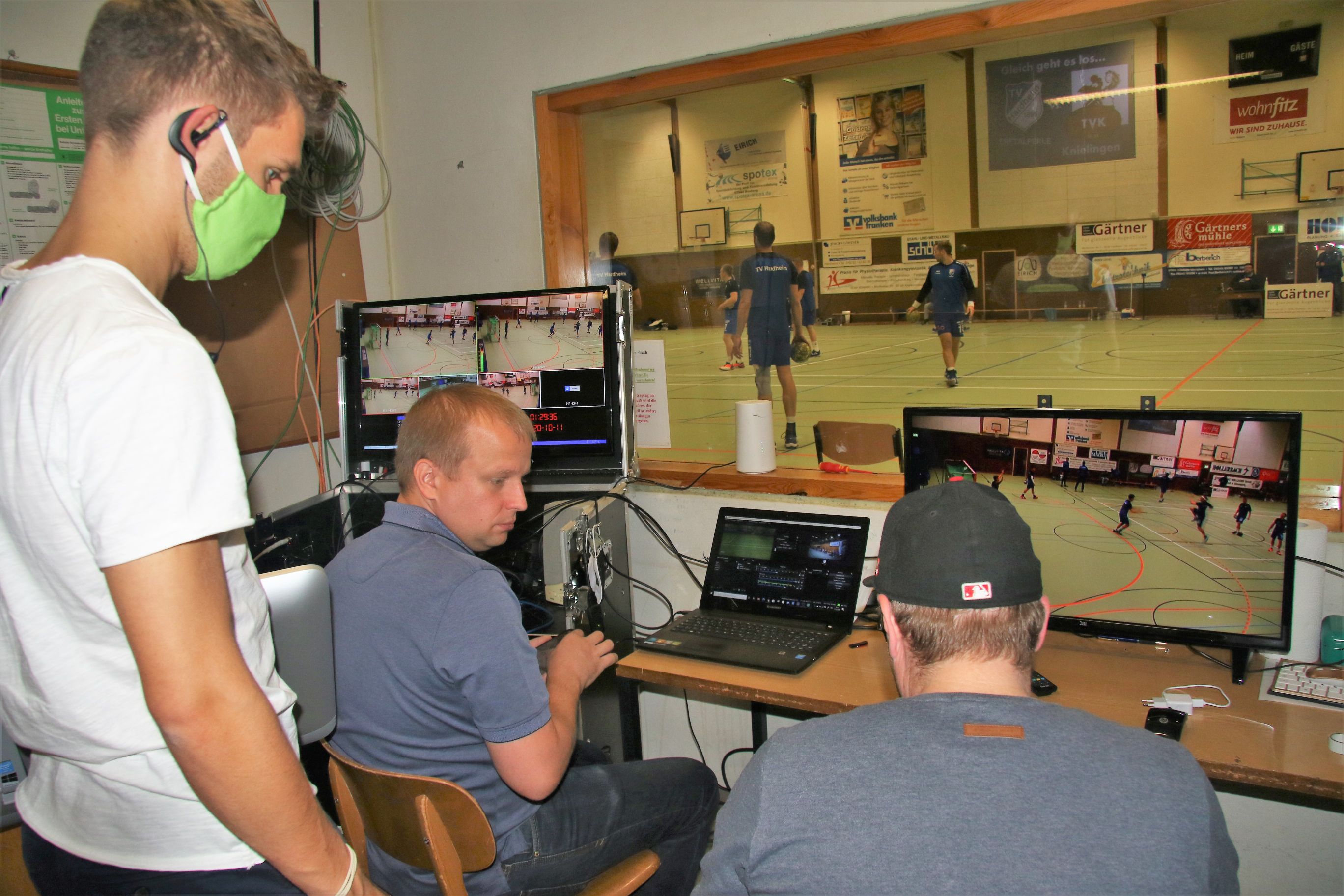 Hardheim. (kn) Die Handballer des TV Hardheim sorgen derzeit sportlich gesehen reichlich für Furore. Das daran nicht nur die rund 170 Auserwählten teilnehmen können, die eine begehrte Karte für ein Heimspiel erworben haben, darum kümmern sich vier Jungs aus Schweinberg. Marcel Gress, Kim Michael, René Zeller und Nils Eisenhauer sorgen dafür, dass derzeit die ganze Welt an den Heimspielen des Badenligisten teilnehmen kann. Mit einer ausgeklügelten und zugleich aufwendigen Technik bringen die vier Internet-Freaks die Spiele live in alle Wohnzimmer und die große Zahl der Links gibt dem Veranstalter Recht, sich in Zeiten von Corona für diese Maßnahme entschieden zu haben.